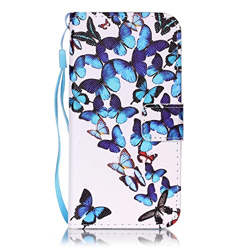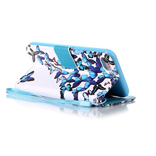 CaseHome Compatible with Case iPhone 7/iPhone 8 4.7'' Caso Custodie Cuoio Magnetica Flip Portafoglio Progettare Cover Protettivo dell'ente Completo Absorber Pelle Shell-Farfalle Blu