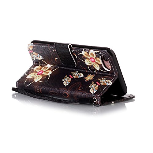 CaseHome Compatible with Case iPhone 7/iPhone 8 4.7'' Caso Custodie Cuoio Magnetica Flip Portafoglio Progettare Cover Protettivo dell'ente Completo Absorber Pelle Shell-Oro dei Fiori di Farfalla