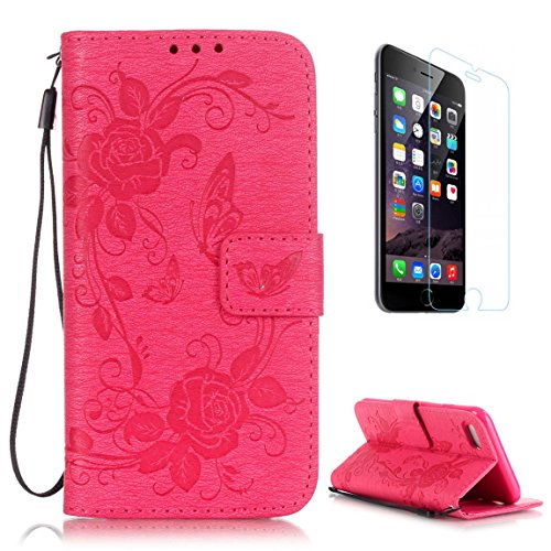 CaseHome Compatible with Case iPhone 7 Plus/iPhone 8 Plus 5.5'' Custodia PU Libro Foglio Flip Magnetico Chiusura Premio Pelle Sintetica Protettivo Caso Copertina Pelle Conchiglia-Red Rose