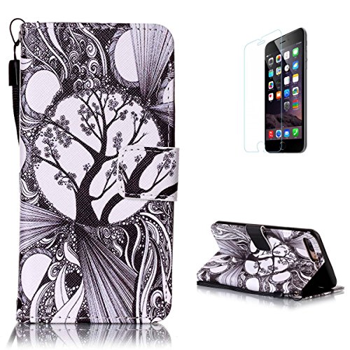 CaseHome Compatible with Case iPhone 7 Plus/iPhone 8 Plus 5.5'' Caso Custodie Cuoio Magnetica Flip Portafoglio Progettare Cover Protettivo dell'ente Completo Pelle Shell-Bianco e Nero dell'albero
