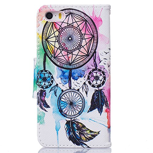 CaseHome Compatible for iPhone SE/5S/5 PU Cuoio Caso Custodie Stile del Libro Folio Flip Magnetico Portafoglio Progettazione Copertura Protettiva della Pelle Shell-Colourful Campanella a Vento