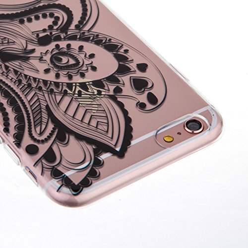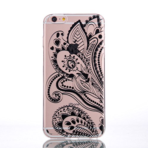 CaseHome Compatible for iPhone 6/6S 4.7 Gel di Silicone Caso (Gratuito Proteggi Schermo) Retro Stile Modello Design Trasparente Paraurti AntiGraffio Protettivo TPU Custodia-Hennè di Fiore