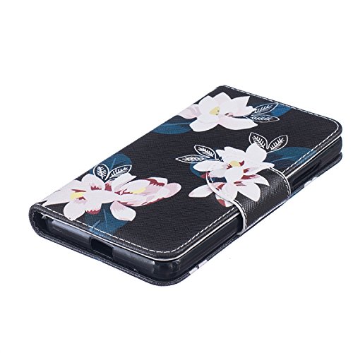 CaseHome Compatible for Microsoft Lumia 650 PU Cuoio Caso Custodie Stile del Libro Folio Flip Magnetico Chiusura Portafoglio Progettazione Copertura Protettiva della Pelle Shell-Lily Fiori Neri