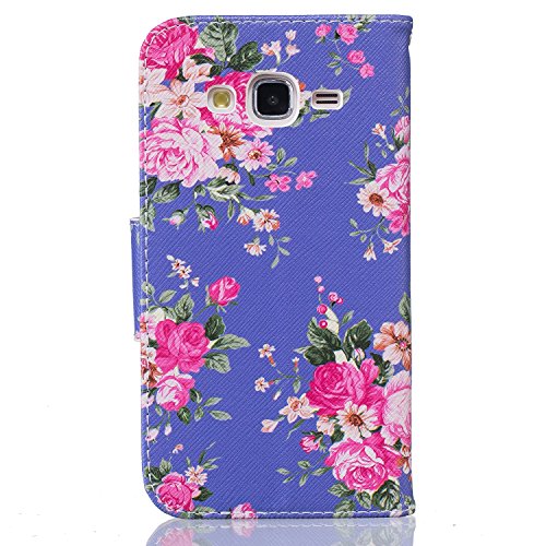 CaseHome Compatible for Samsung Galaxy J5 2015/J500FN PU Cuoio Caso Custodie Stile del Libro Folio Flip Magnetico Portafoglio Progettazione Protettiva della Pelle Shell-Luminosi Fiori Colorati