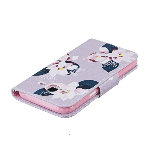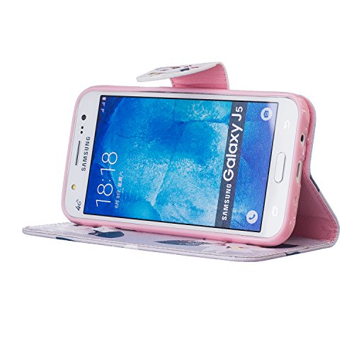 CaseHome Compatible for Samsung Galaxy J5 2015/J500FN PU Cuoio Caso Custodie Stile del Libro Folio Flip Magnetico Portafoglio Progettazione Copertura Protettiva della Pelle Shell-Fiori Bianchi Giglio