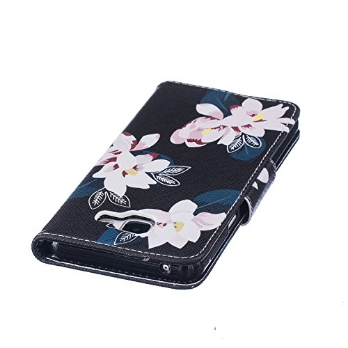 CaseHome Compatible for Samsung Galaxy A5 2016/A510F PU Cuoio Caso Custodie Stile del Libro Folio Flip Magnetico Portafoglio Progettazione Copertura Protettiva della Pelle Shell-Lily Fiori Neri