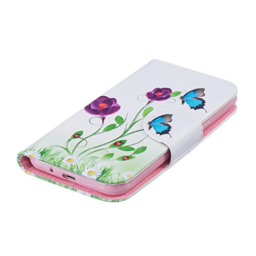 CaseHome Compatible for Samsung Galaxy J3 2016/J310/J3 2015 PU Cuoio Caso Custodie Stile del Libro Folio Flip Magnetico Portafoglio Protettiva della Pelle Shell-Blu Farfalle e Fiori Viola