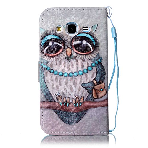 CaseHome Compatible for Samsung Galaxy J3 2016/J310/J3 2015 Caso Custodie Cuoio Magnetica Flip Portafoglio Progettare Case Cover Protettivo dell'ente Completo Absorber Pelle Shell-Gufo Sveglio