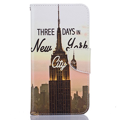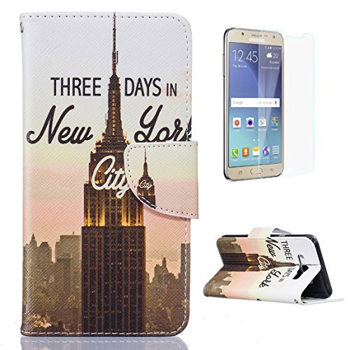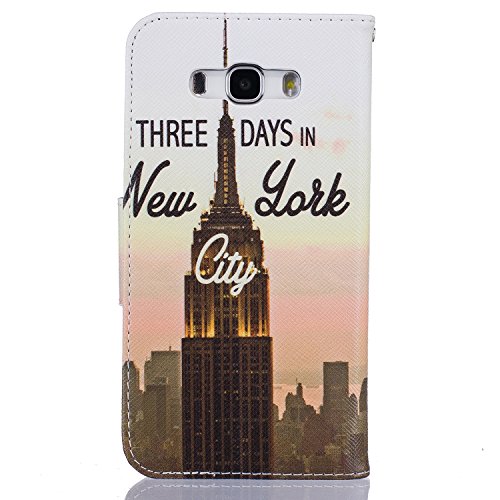 CaseHome Compatible for Samsung Galaxy J7 2016/J710 PU Cuoio Caso Custodie Stile del Libro Folio Flip Magnetico Portafoglio Progettazione Copertura Protettiva della Pelle Shell-Empire State Building