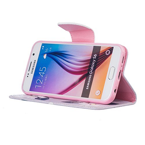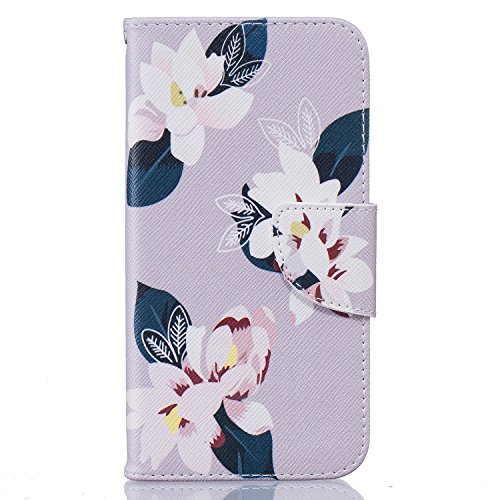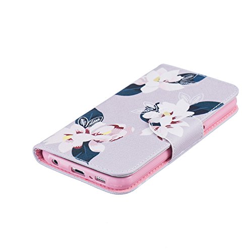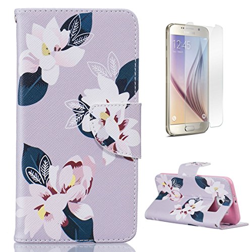 CaseHome Compatible for Samsung Galaxy S6 PU Cuoio Caso Custodie Stile del Libro Folio Flip Magnetico Chiusura Portafoglio Progettazione Copertura Protettiva della Pelle Shell-Fiori Bianchi Giglio