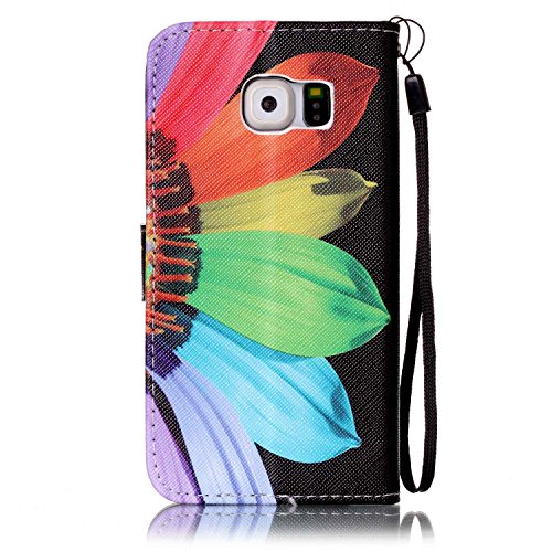 CaseHome Compatible for Samsung Galaxy S6 Caso Custodie Cuoio Magnetica Flip Portafoglio Progettare Case Cover Protettivo dell'ente Completo Absorber Pelle Shell-Girasole