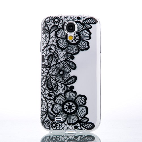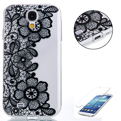 CaseHome Compatible for Samsung Galaxy S4 i9500 Gel di Silicone Caso (Gratuito Proteggi Schermo) Retro Stile Modello Design Trasparente Paraurti AntiGraffio Protettivo TPU Custodia-Margherita