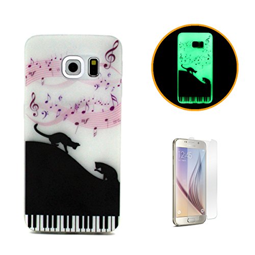 CaseHome - Cover luminosa per iPhone SE/5S/5, con protezione schermo, creative design modello unico stampato effetto fluorescente verde Night Glow in the Dark brilla al buio ultra sottile trasparente e morbida in gel di silicone TPU, custodia protettiva per Apple Iphone SE/5S/5- Dente di leone, Piano Cat, Samsung Galaxy S6