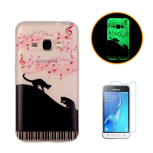 CaseHome - Cover luminosa per iPhone SE/5S/5, con protezione schermo, creative design modello unico stampato effetto fluorescente verde Night Glow in the Dark brilla al buio ultra sottile trasparente e morbida in gel di silicone TPU, custodia protettiva per Apple Iphone SE/5S/5- Dente di leone, Piano Cat, Samsung Galaxy J1 (2016)/J120