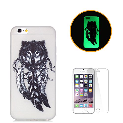CaseHome - Cover luminosa per iPhone SE/5S/5, con protezione schermo, creative design modello unico stampato effetto fluorescente verde Night Glow in the Dark brilla al buio ultra sottile trasparente e morbida in gel di silicone TPU, custodia protettiva per Apple Iphone SE/5S/5- Dente di leone, Wolf Dreamcatcher, Apple iPhone 6/6S 4.7''