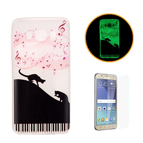 CaseHome - Cover luminosa per iPhone SE/5S/5, con protezione schermo, creative design modello unico stampato effetto fluorescente verde Night Glow in the Dark brilla al buio ultra sottile trasparente e morbida in gel di silicone TPU, custodia protettiva per Apple Iphone SE/5S/5- Dente di leone, Piano Cat, Samsung Galaxy J7 (2016)