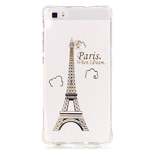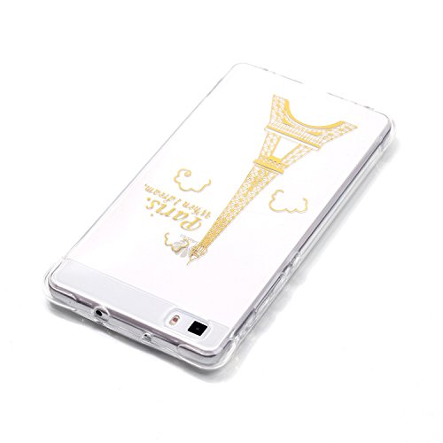 CaseHome HUAWEI P8 Lite Custodia Morbido Trasparente Chiaro Creative Case Cover in Silicone Gel Cellulare Protettiva Cassa Caso Premio Gel Gomma Anti Scivolo Ammortizzante Bumper Copertina Ultra-sottile Slim Flessibile Skin Protettore Con Galvanica Modello Copertura del Paraurti Cover posteriore Per HUAWEI P8 Lite-L'oro Torre Eiffel