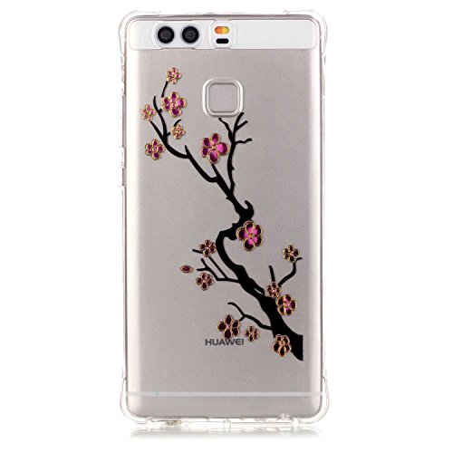 CaseHome HUAWEI P9 Custodia Morbido Trasparente Chiaro Creative Case Cover in Silicone Gel Cellulare Protettiva Cassa Caso Premio Gel Gomma Anti Scivolo Ammortizzante Bumper Copertina Ultra-sottile Slim Flessibile Skin Protettore Con Galvanica Modello Copertura del Paraurti Cover posteriore Per HUAWEI P9-Prugna Fiorire
