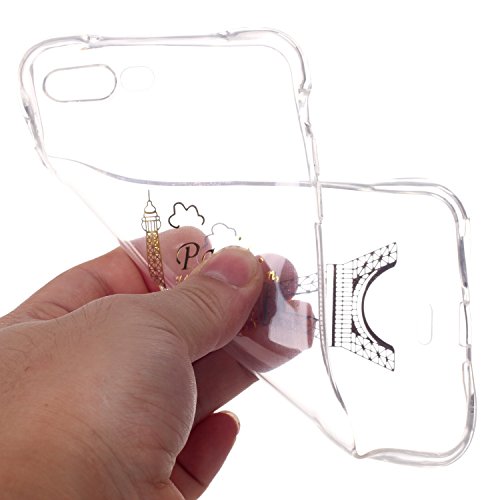 CaseHome iPhone 7 Plus 5.5'' Custodia Morbido Trasparente Chiaro Creative Case Cover in Silicone Gel Cellulare Protettiva Cassa Caso Premio Gel Gomma Anti Scivolo Ammortizzante Bumper Copertina Ultra-sottile Slim Flessibile Skin Protettore Con Galvanica Modello Copertura del Paraurti Cover posteriore Per Apple iPhone 7 Plus 5.5''-L'oro Torre Eiffel