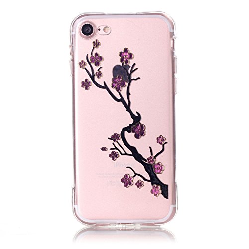 CaseHome iPhone 7 4.7'' Custodia Morbido Trasparente Chiaro Creative Case Cover in Silicone Gel Cellulare Protettiva Cassa Caso Premio Gel Gomma Anti Scivolo Ammortizzante Bumper Copertina Ultra-sottile Slim Flessibile Skin Protettore Con Galvanica Modello Copertura del Paraurti Cover posteriore Per Apple iPhone 7 4.7''-Prugna Fiorire