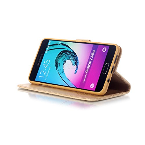 CaseHome for Samsung Galaxy A5 2016/A510F Custodia Cacciatore Libro Foglio Flip Magnetico Chiusura Costruito in Stand Full Body Protettivo Custodia PU Copertina Pelle Conchiglia-Oro