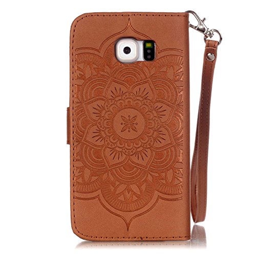 CaseHome for Samsung Galaxy S6 Custodia Cacciatore Libro Foglio Flip Magnetico Chiusura Costruito in Stand Full Body Protettivo Custodia PU Copertina Pelle Conchiglia per Samsung Galaxy S6-Marrone
