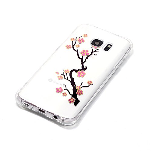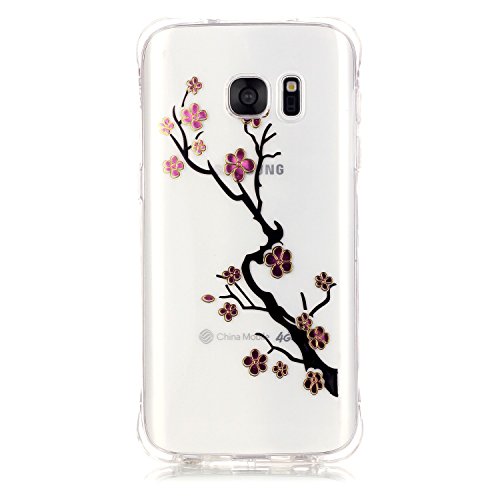 CaseHome Samsung Galaxy S7 Custodia Morbido Trasparente Chiaro Creative Case Cover in Silicone Gel Cellulare Protettiva Cassa Caso Premio Gel Gomma Anti Scivolo Ammortizzante Bumper Copertina Ultra-sottile Slim Flessibile Skin Protettore Con Galvanica Modello Copertura del Paraurti Cover posteriore Per Samsung Galaxy S7-Prugna Fiorire