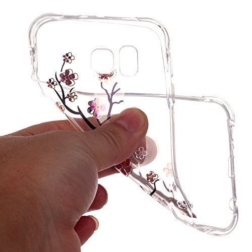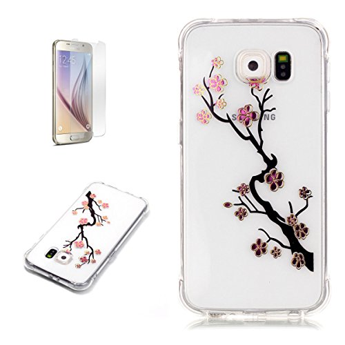 CaseHome Samsung Galaxy S6 Custodia Morbido Trasparente Chiaro Creative Case Cover in Silicone Gel Cellulare Protettiva Cassa Caso Premio Gel Gomma Anti Scivolo Ammortizzante Bumper Copertina Ultra-sottile Slim Flessibile Skin Protettore Con Galvanica Modello Copertura del Paraurti Cover posteriore Per Samsung Galaxy S6-Prugna Fiorire