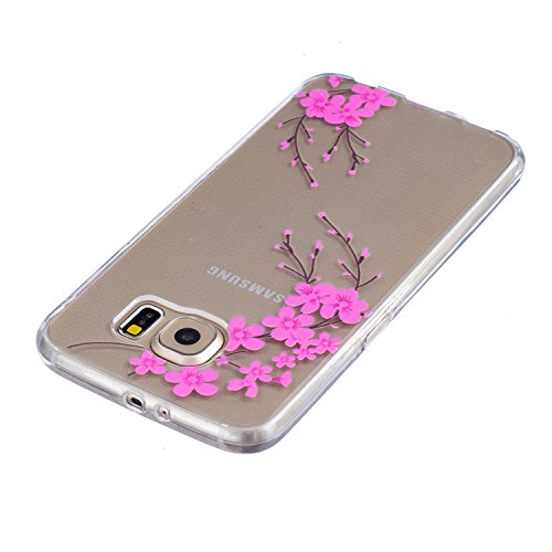 CaseHome for Samsung Galaxy S6 Gel di Silicone Custodia Cristallo Ultra Magro Gelatina Gomma da Cancellare TPU Protettivo Caso Copertina Pelle Conchiglia per Samsung Galaxy S6-Pink Cherry Blossom