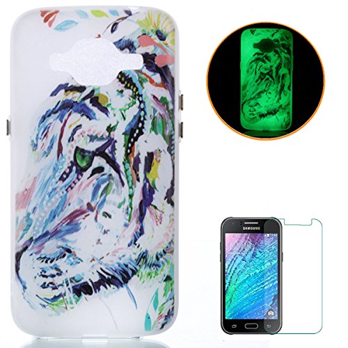 CaseHome Samsung Galaxy J2 2016 Version Gel di Silicone Caso [con Gratuito Proteggi Schermo], CaseHome [Notte Luminosa Effetto] Verde Fluorescente Si Illuminano al Buio Morbido Chiaro Ultra Sottile Vestibilità Perfetta Antiurto Durevole Gomma da Cancellare TPU Sottile Astuccio Copertina Pelle Conchiglia con Unico Elegante Bello Colorato Modello Progettare per Samsung Galaxy J2 2016 Version-Acquerello Tiger
