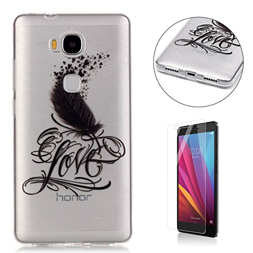 CaseHome gel di silicone HUAWEI Honor 5X Caso [con la protezione dello schermo libero] Cristallo libera Ultra sottile Sottile Fit Shock Proof morbido Durevole Gomma Paraurti Graffiare Resistente protettivo alta qualità TPU Caso Copertina Pelle Conchiglia per HUAWEI Honor 5X con bello Colourful Modello Design-Cuori piuma
