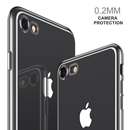 CASEKOO Cover iPhone 7, Silicone Ultra Slim Molle Trasparente con Disegni Anti-Graffio Protettiva Aria-Cuscino Assorbimento Urti Bumper Caso Tecnologia di Assorbimento per Apple iPhone 7 (4.7")- Nero