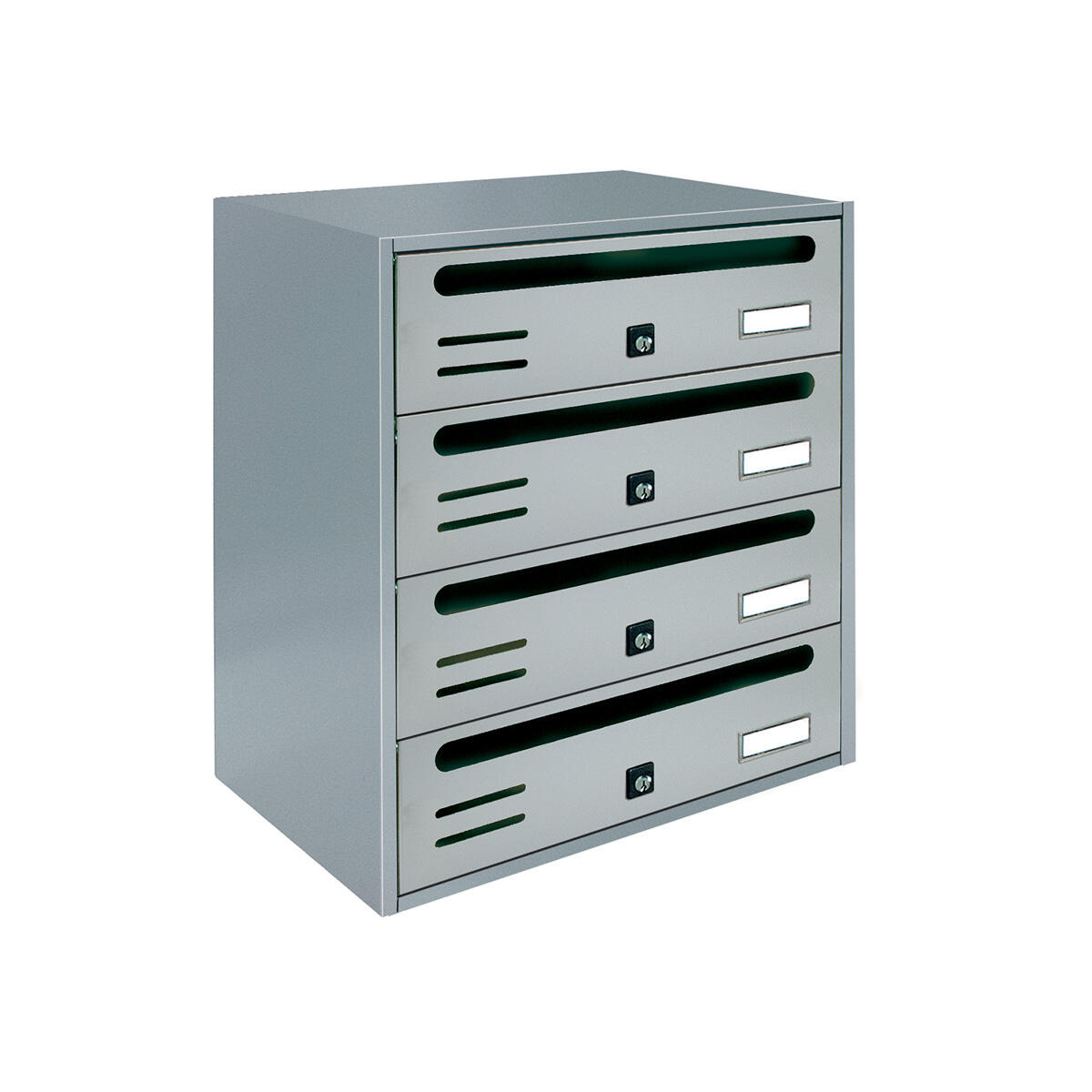 Casellario postale 4 buche orizzontali, per interni, formato rivista, color argento