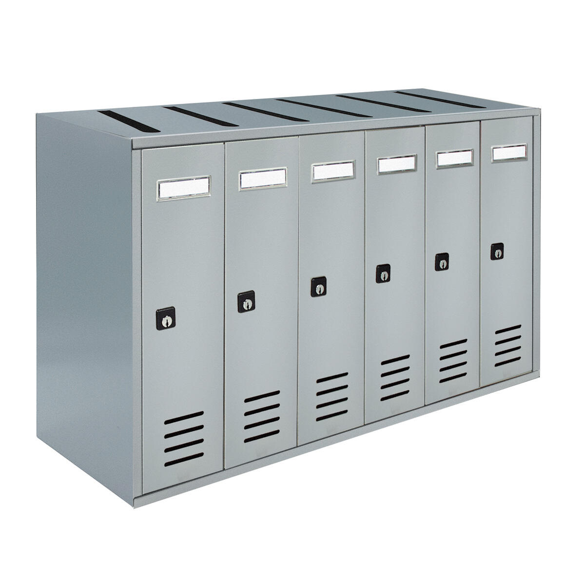 Casellario postale 6 buche verticali, per interni, formato rivista, color argento