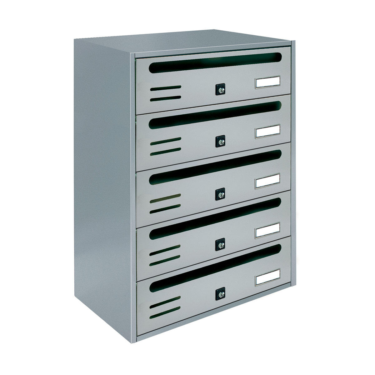Casellario postale 5 buche orizzontali, per interni, formato rivista, color argento