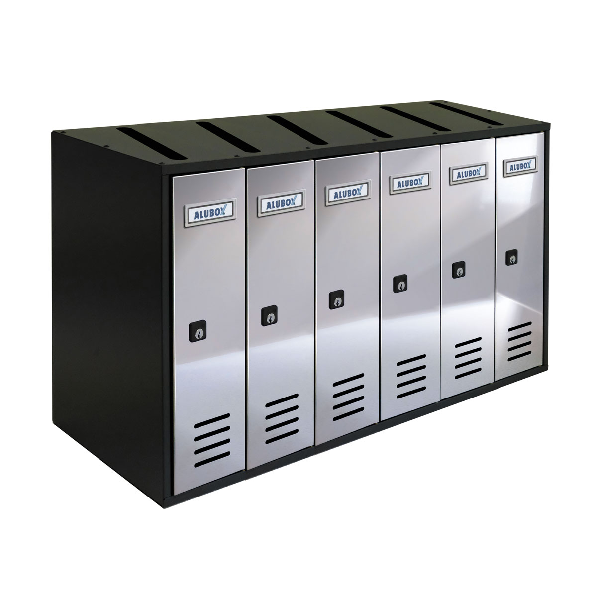 Casellario postale 6 buche verticali, per interni, formato rivista, con sportelli in inox specchiato