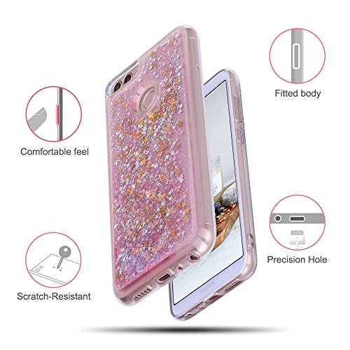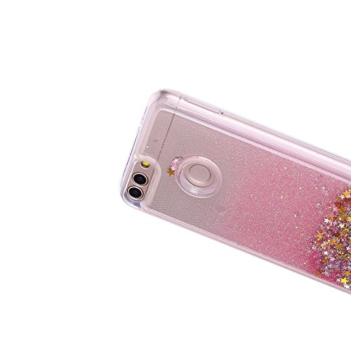 CaseLover Cover Huawei P Smart, 3D Glitter Liquido Sabbie Mobili Trasparente Morbido TPU Silicone Custodia per Huawei P Smart Brillantini Sequin Posteriore Copertura Protettiva Case - Rosa e Oro