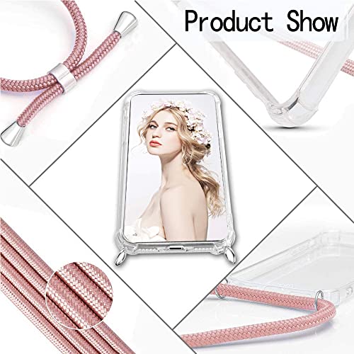 CaseLover Custodia con Collana per Samsung Galaxy S21, Cover Trasparente con Cordino Ultra Sottile Morbido Silicone TPU Bumper Shock Absorption Corner Cushion Case per Samsung Galaxy S21 5G, Oro Rosa