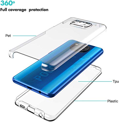 CaseNN Cover Compatibile con Xiaomi Poco X3 NFC/Poco X3 PRO Custodia 360 Gradi Antiurto Silicone Gel TPU e PC Full Body Protettiva Protezione Ai Graffi Case Bumper Trasparente HD Chiaro Sottile