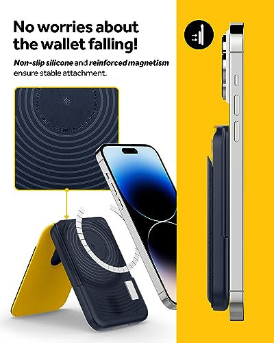 Caseology Nano Pop Magsafe Portafoglio Stand [Potente Doppia Struttura] Supporto Antiscivolo Porta Carte in Silicone e Magnetico per iPhone 15 14 13 12, Non Compatibile con 13/12 Mini - Blueberry Navy