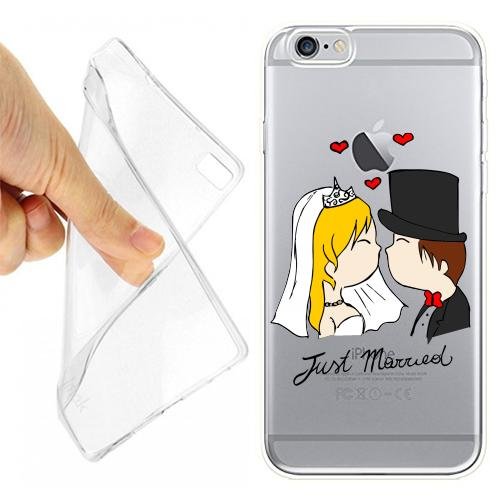 CASEONE Linea Top Custodia Cover Case SPOSI Felici per iPhone 6 6S Trasparente
