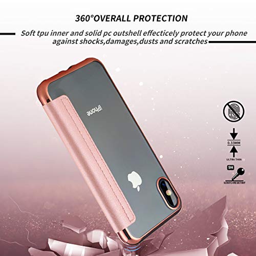 Casetego Compatibile iPhone XS Max Custodia, Custodia in Pelle PU a Flip Case Card Slot & Trasparente Morbido TPU Posteriore per Apple iPhone XS Max 16,5 cm Oro Rosato