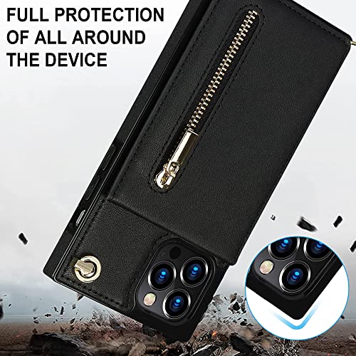 Casetic Crossbody Wallet for iPhone Case-Credit Card Holder, 2022 New Pu Leather Multi-Function Wallet Flip Protective Case, Multifunctional Leather Crossbody Phone Case (Black,for iPhone 13pro)