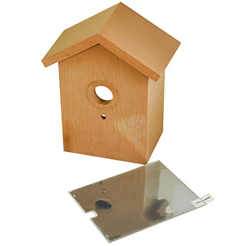 ASAB Set casetta per Uccelli Selvatici, Kit casetta per Uccelli con Finestra Spia e Lamina a Specchio unidirezionale, casetta per pettirossi in plastica con Design Effetto Legno