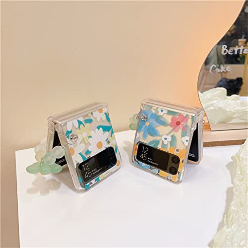 CASEVERSE Custodia per Samsung Galaxy Z Flip 4 5G, carino PC Fiore Trasparente Cover con Catena e Pendente per Galaxy Z Flip 4 per Ragazze Donna
