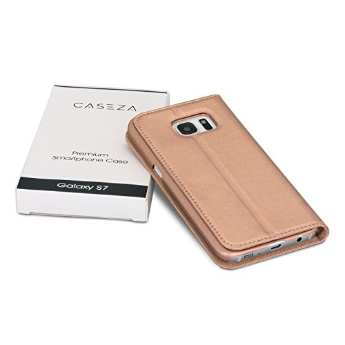 CASEZA Cover Galaxy S7 Similpelle a Libro Oslo Oro Rosa - Custodia Flip Eccellente in Pelle Sintetica a Portafoglio per Samsung Galaxy S7 Originale - Ultra Sottile con Chiusura Magnetica