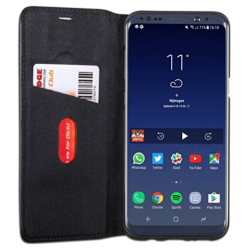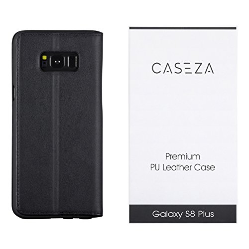 CASEZA Cover Galaxy S8 Plus Nero Similpelle a Libro Oslo Custodia Eccellente in Pelle Sintetica a Portafoglio per Samsung Galaxy S8+ (6,2") Originale - Ultra Sottile con Chiusura Magnetica