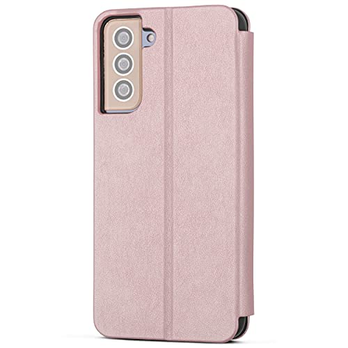 CASEZA Cover Galaxy S21 Plus Oro Rosa Similpelle a Libro Dublin Custodia Eccellente in Pelle Sintetica a Portafoglio per Samsung Galaxy S 21+ 5G - Ultra Sottile con Chiusura Magnetica