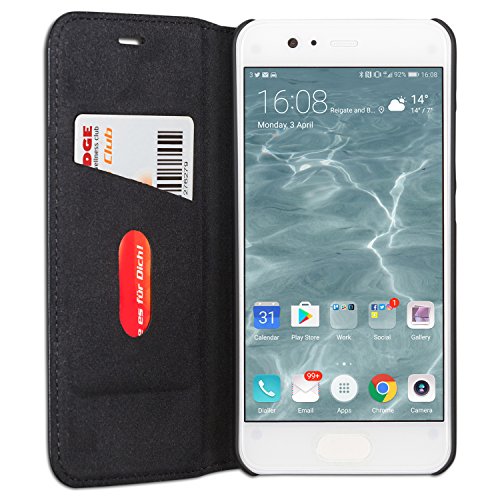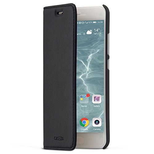 CASEZA Cover Huawei P10 Nero Similpelle a Libro Oslo Custodia Eccellente in Pelle Sintetica a Portafoglio per Huawei P10 (5,1") Originale - Ultra Sottile con Chiusura Magnetica