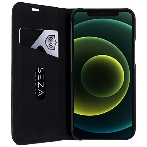CASEZA Cover iPhone 12 Mini Nero Similpelle a Libro Oslo Custodia Eccellente in Pelle Sintetica a Portafoglio per iPhone 12 Mini (5.4") Originale - Ultra Sottile con Chiusura Magnetica